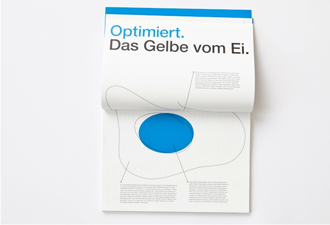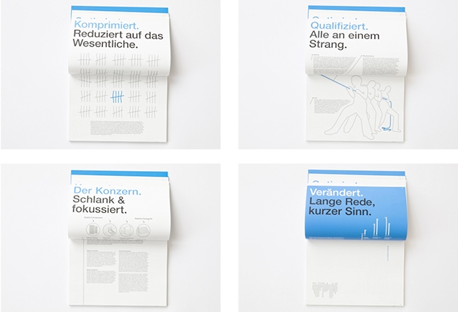Überraschung beim Blättern: Der Bericht dreht sich um 90 Grad. Gewohnte Lesegewohnheiten kommen in Bewegung. Conergy – ein Unternehmen, das Solaranlagen entwickelt und baut – berichtet über seinen Strategiewechsel. Versinnbildlicht wird dieser durch Redewendungen. Diese sind klar und einfach illustriert.